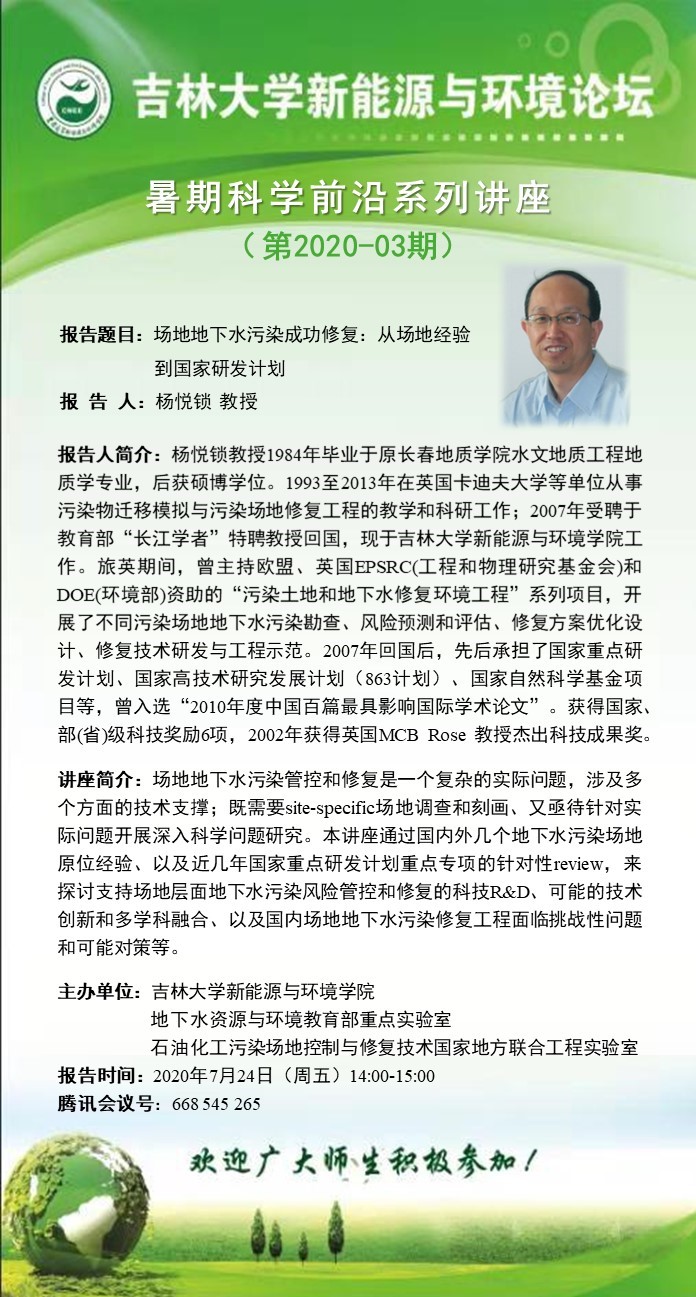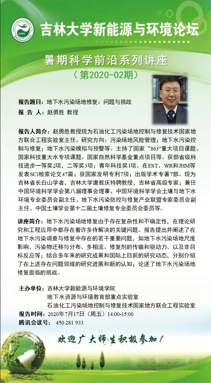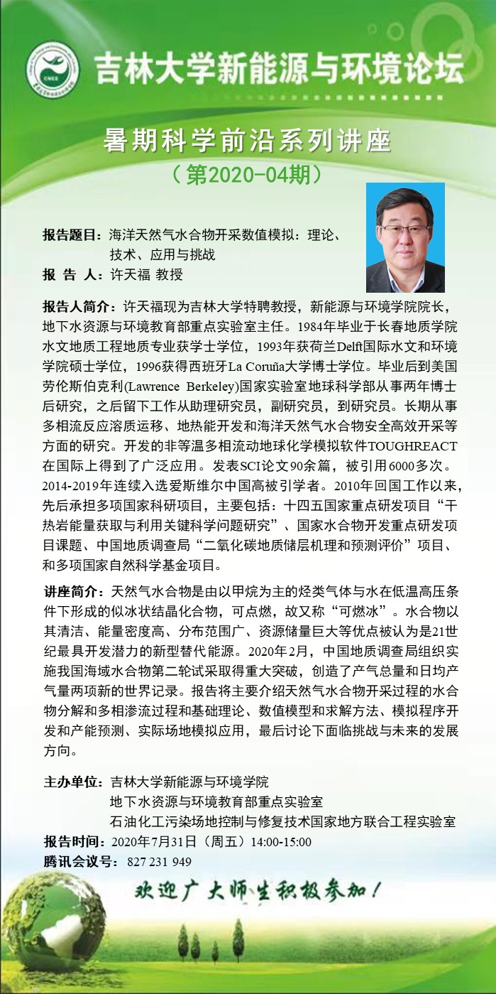吉林大学新能源与环境论坛——暑期科学前沿系列讲座