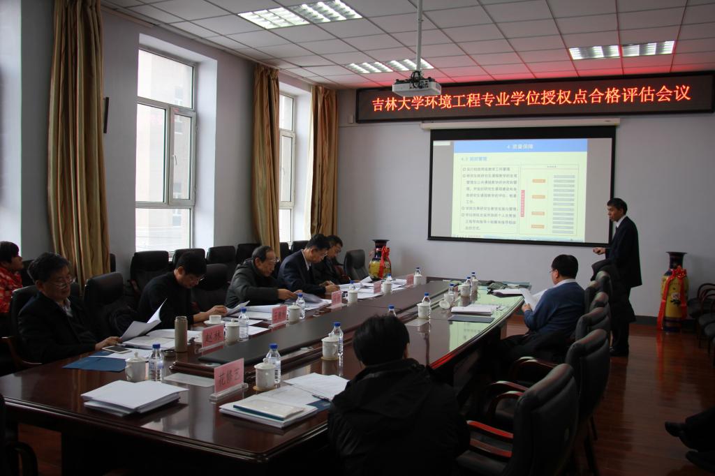 吉林大学水利工程及环境工程两个领域的专业学位硕士授权点合格评估会议于2017年12月11日上午在吉林大学前卫北区理化楼召开。水利工程领域专业学位授权点评估组的组长为清华大学水利水电工程设计研究所所长王恩志教授,成员包括:大连理工大学水利电力研究所所长马震岳教授,防灾科技学院副院长迟宝明教授,中山大学地理科学与规划学院副院长刘丙军教授,中水东北勘测设计研究院有限责任公司主任王建中高级工程师。环境工程领域专业学位授权点评估组的组长为全国环境工程领域工程硕士教育协作组副组长、哈尔滨工业大学城市水环境与水生态国家重点实验室常务副主任马放教授,成员包括:北京工业大学建筑工程学院水资源所所长张永祥教授,东北师范大学环境学院院长王德利教授,天津大学环境科学与工程学院副院长赵林教授,中国市政工程东北设计研究总院副院长张富国教授级高工。参加评估会的还有吉林大学副校长孙友宏教授,研究生院副院长兼学位办主任王剑教授、学位办高全胜副主任,环境与资源学院院长许天福教授、党委书记陆志东研究员、副院长卞建民教授、副院长花修艺教授、环境工程系主任董军教授、地下水科学与工程系主任杜新强教授以及学院师生代表和管理人员代表。