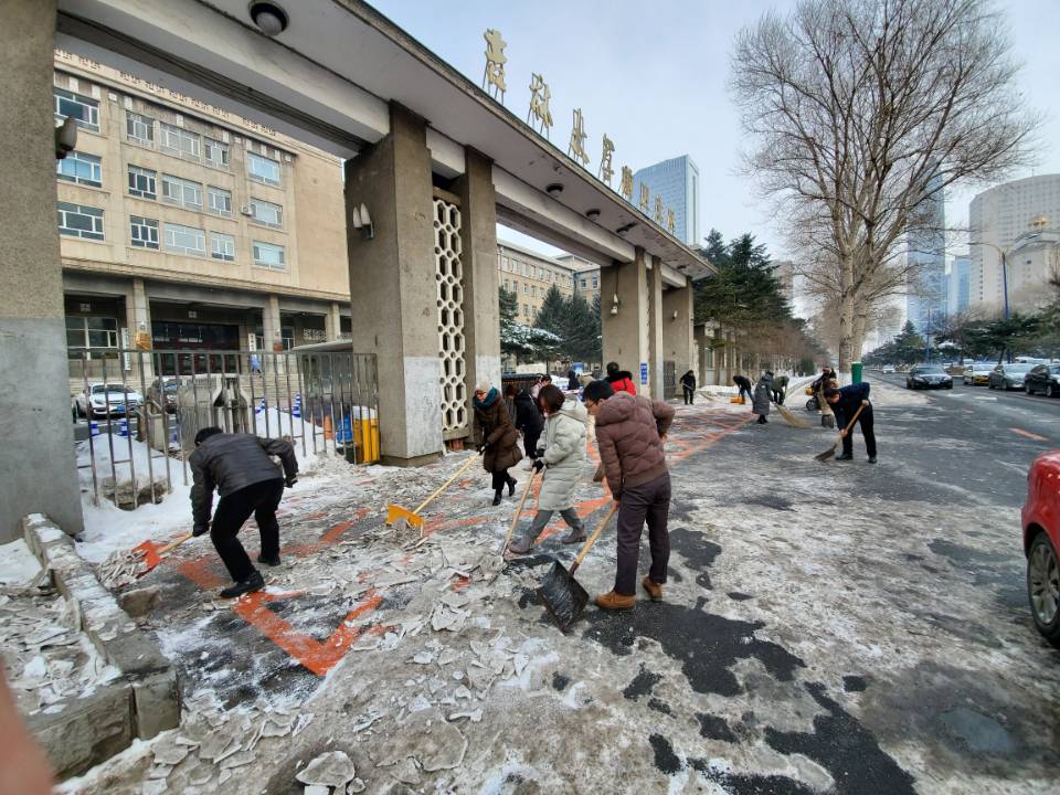 本次活动得到了全体支部成员积极响应,全体支部党员不怕苦、不怕累,铲雪现场气氛热烈,干劲冲天。受党员同志们铲雪除冰现场火热气氛的感染,路过现场的我系民主党派人士和群众也自发拿起工具加入铲雪除冰队伍中,形成了党员群众齐动手,铲雪除冰暖人心的美丽场景。经过近一小时的奋战,大家终于将门前的积雪积冰清扫干净,为广大师生开辟了一条充满温情的畅通之路,恢复了吉林大学北区校门的整洁形象。