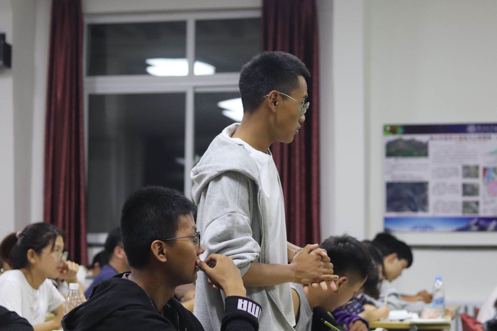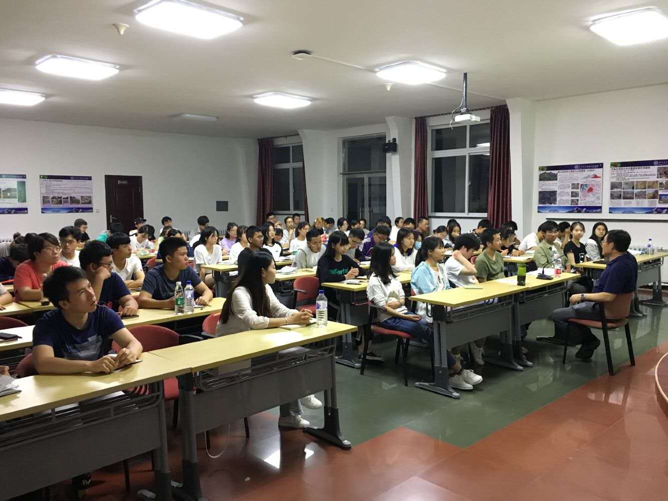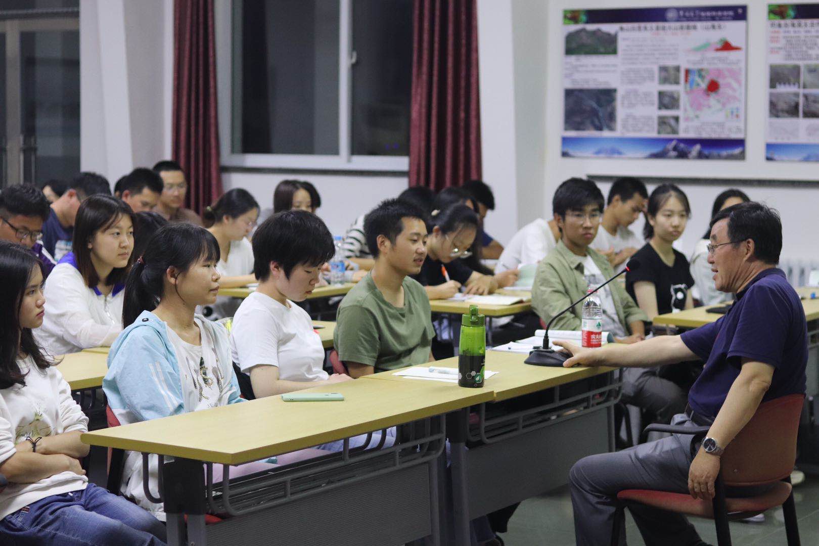 达了书本知识在实践运用过程中的困惑,提出了学院专业评估前景以及本专业相关的考研、就业等问题,许院长肯定同学们在书本上与野外实习中汲取的知识,分析专业现状与就业前景,鼓励同学们继续深造。同学们也积极地分享了自己本周实习过程中的趣事,教室中掌声与欢笑不断。
