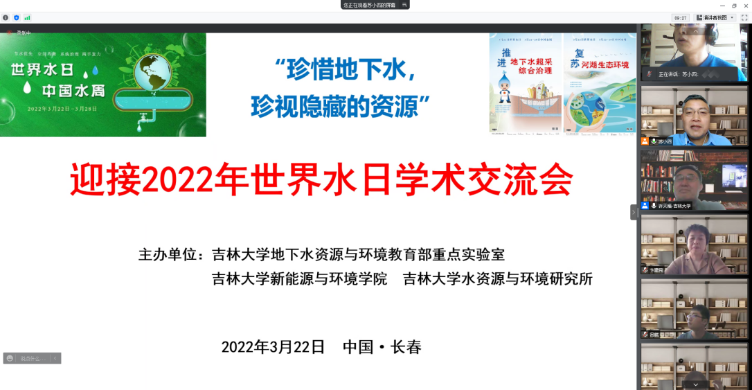 为深入落实习近平总书记“节水优先、空间均衡、系统治理、两手发力”治水思路,共同探讨地下水保护与利用的平衡之道,3月22日下午新葡萄8883官网AMG、水资源与环境研究所与地下水资源与环境教育部重点实验室共同组织召开了迎接2022年世界水日学术交流会。会议由水资源与环境研究所所长苏小四教授主持,学院领导、相关教师和研究生、本科生同学350余人在线参加了此次学术交流。