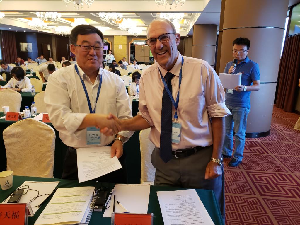 会议期间,许天福教授代表新葡萄8883官网AMG与来自美国犹他大学的Joseph Neal Moore教授、法国ES-Géothermie公司的技术经理Albert Genter分别签署了“增强型地热工程研究发展”协议(Memorandum of Understanding on Enhanced Geothermal Research and Development, MoU)。未来双方将在学术研究、工程实践、人才培养等方面开展深入的交流合作,共同探索干热岩资源勘查开发的新契机。